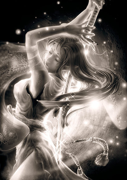 6.Внешность - У нее две ипостаси:ангел и эльфийка.В ипостаси эльфийки у нее длинные, до пояса золотистые волосы, и светло-зеленые глаза, в которых играют искры.Почти всегда в легких кожаных доспехах, которые только подчеркивают ее утонченную фигуру.За спиной две катаны, которыми владеет как мастер.